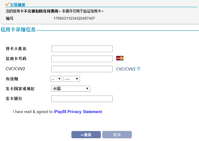 - 2、在验证的过程中,ipay88需要预授权一笔小额消费,所以你的信用卡必须开通了境外无卡支付,如果没开通就可能验证不过。